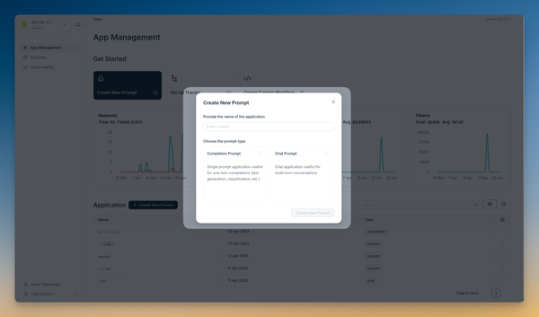 Go to the app overview and click on Create a Prompt. You can choose between: